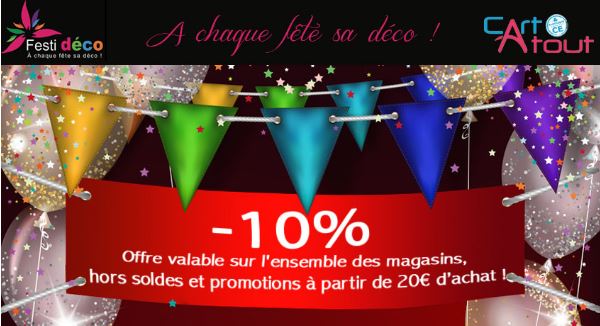 -10% : Offre valable sur l'ensemble des magasins, à partir de 20€ d'achat ! Hors coffrets de Noël, Hors calendriers de l'Avent !